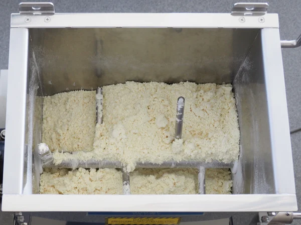 ドラム内のピン(攪拌棒)は中心軸に対して8方向に配置されており、これが高速で回転するため素早く粉と水を混ぜ合わせる事が出来ます。